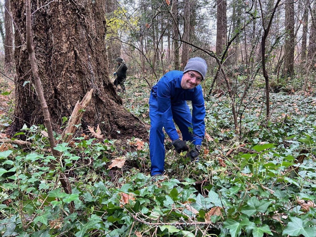 42 participants spent the morning working, chatting and joking side-by-side, getting to know one another while engaging in hands-on stewardship. Together, they removed 15 cubic metres (94 bathtubs worth!) of invasive ivy that was spreading across the forest floor and climbing up trees, threatening the health of the ecosystem. 40 trees were saved from the tangles of the invasive vine, and many native shrubs were freed. The team’s collective efforts not only improved the resilience of this valuable green space, increasing biodiversity, supporting native plants, and protecting trees, but also strengthened local community ties.