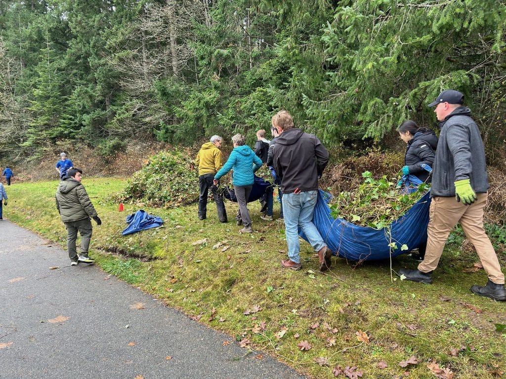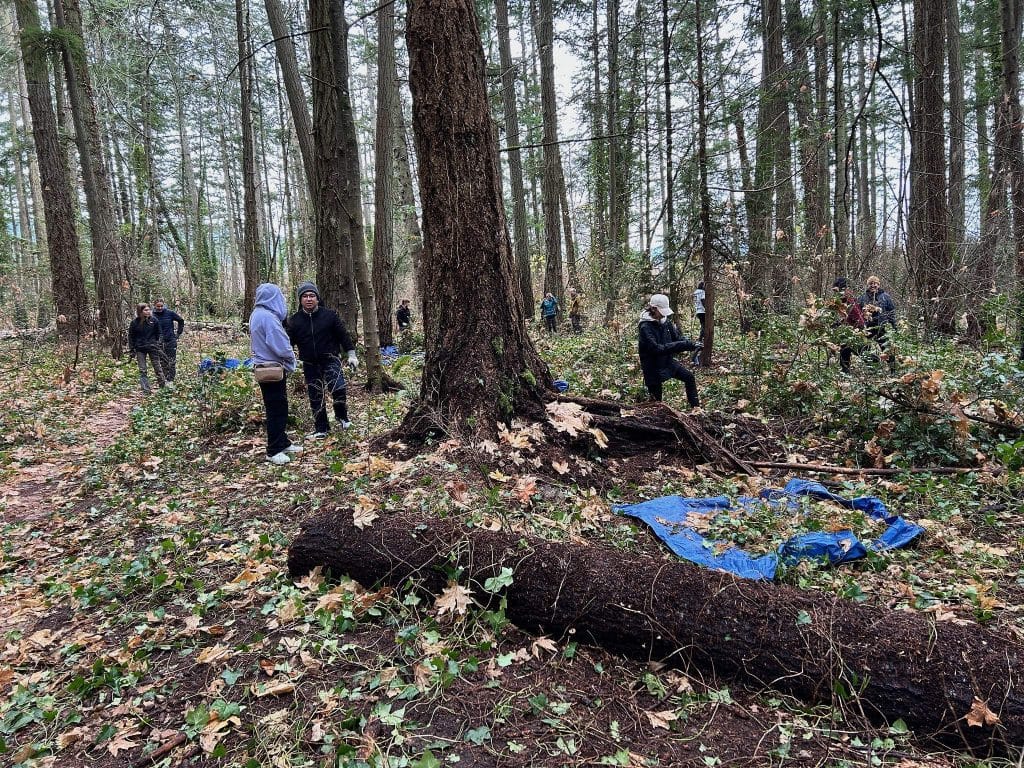 On Saturday, November 29, the forest at Dickson Woods on Willingdon Road in North Saanich (near the airport) was filled with laughter, teamwork, and muddy gloves as community members came together for a morning of environmental restoration and connection. The activity, led by Green Teams of Canada’s Greater Victoria Green Team (GVGT), brought people of all ages and experience levels into the forest to help remove invasive English ivy and make space for native species to thrive. These activities were made possible through partnership with the Victoria Airport Authority.