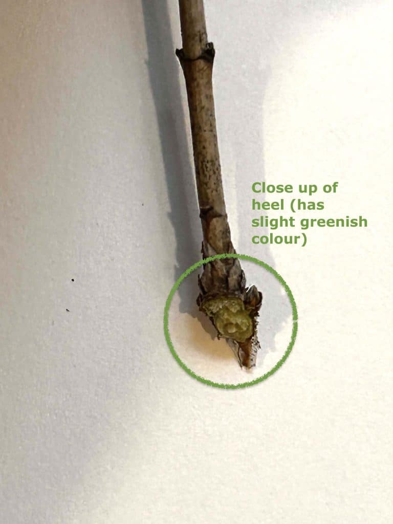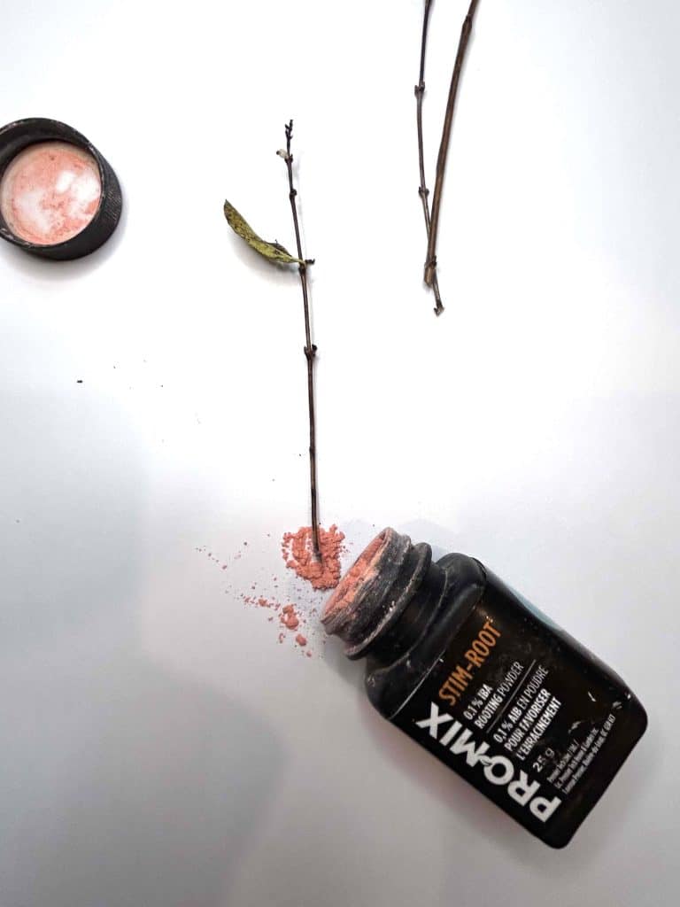 To plant the sticks, use a stick or your finger to make a hole that is about 2 cm deep. Once the stick is in the hole, the dirt should cover the first leaf bud above the heel or bottom cut. Water the soil and leave outside to do its thing – ensure that the pots do not sit in standing water, which could cause rot. You can also plant the sticks directly in the ground.