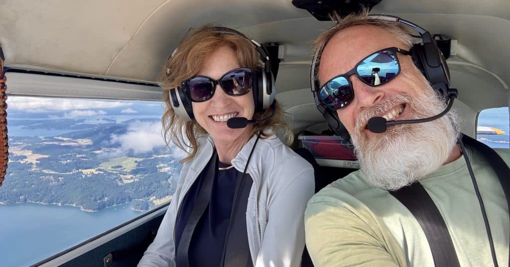 If you notice a small white airplane with yellow wing tips flying overhead in North Saanich one of these days, there’s a pretty good chance it’s Jayson and Natalie of Big to the Rescue!